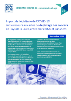 Ce septième numéro de la collection "Épidémio Covid-19 : comprendre et agir" analyse l’évolution du recours des habitants des Pays de la Loire aux actes de dépistage des cancers du col de l’utérus, du sein et colorectal au cours des quinze premiers mois de l’épidémie de Covid-19 (de mars 2020 à juin 2021).